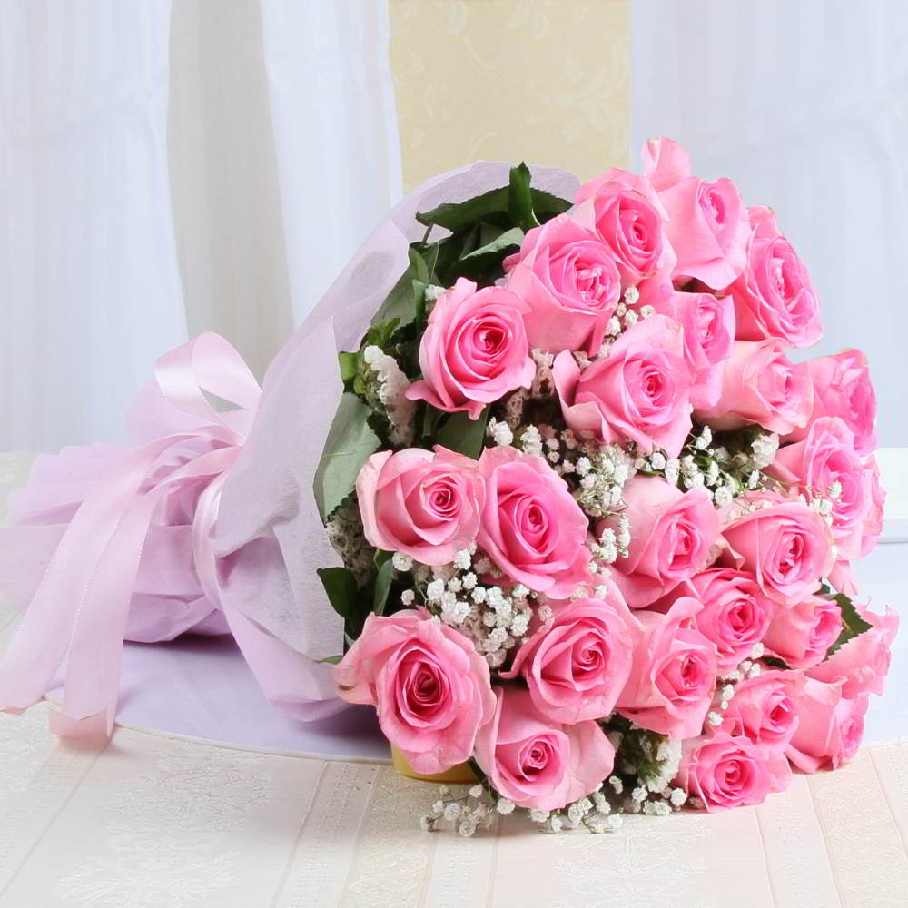 Product Includes: Bouquet of 28 Pink Roses with some fillers.