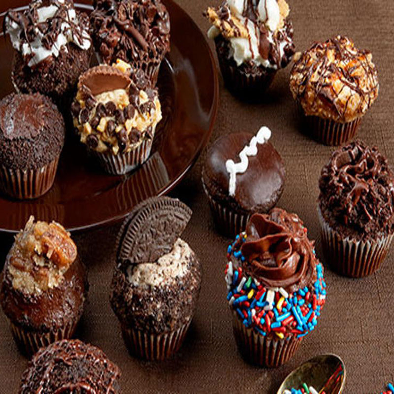 Product Includes: Dozen Chocolate Lovers Mini Cupcakes.