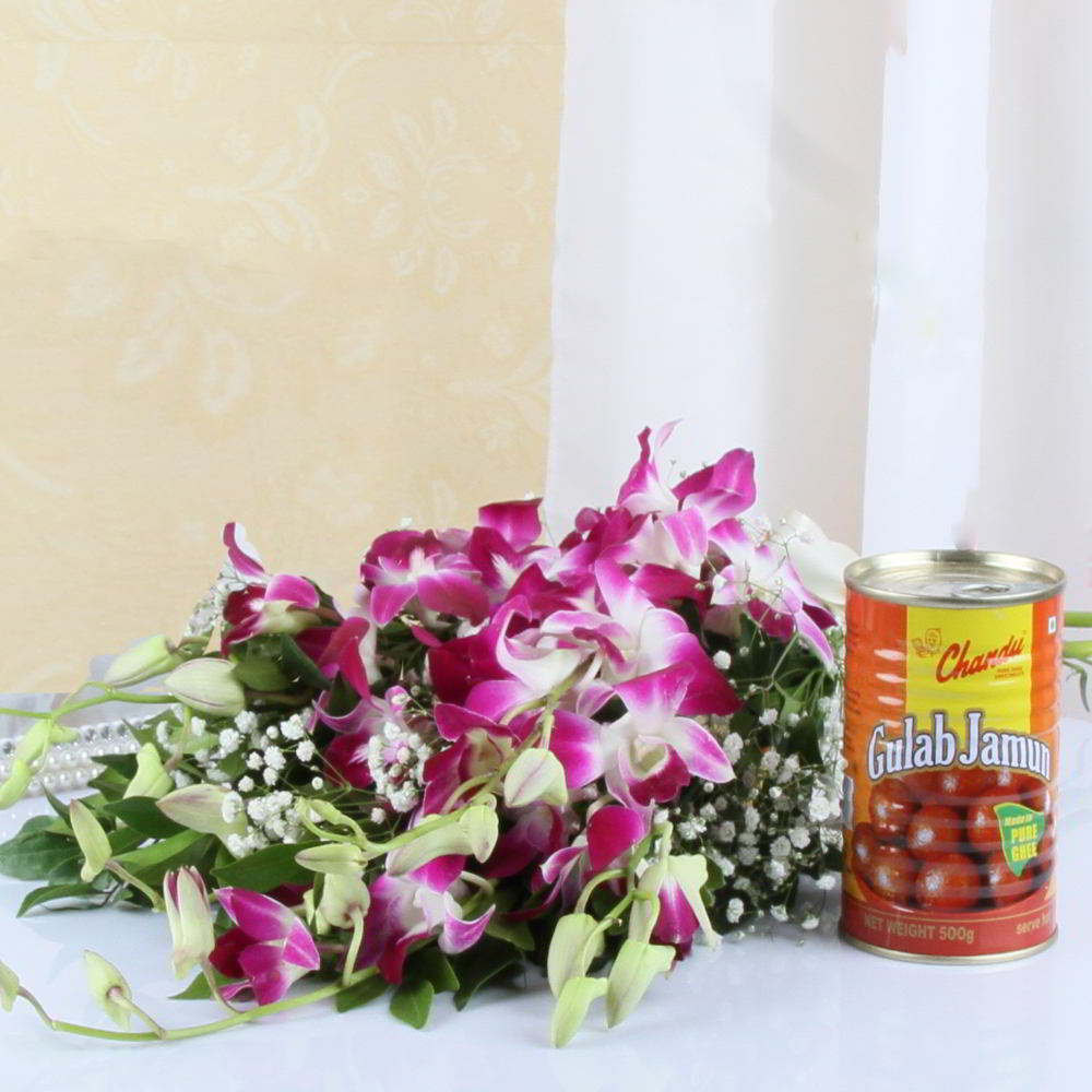 Gulab Jamun with Orchids Bouquet