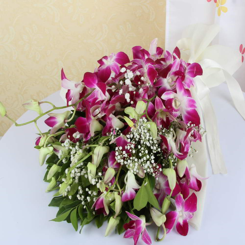 Product Includes: Bouquet of 12 Purple Orchids with some fillers.
