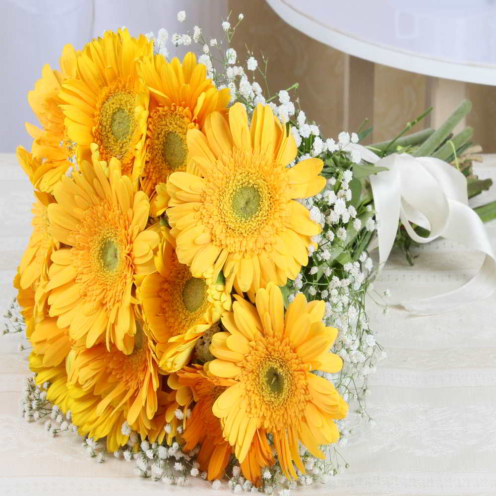 Product Includes: Bouquet of 12 Yellow Gerberas with some fillers.